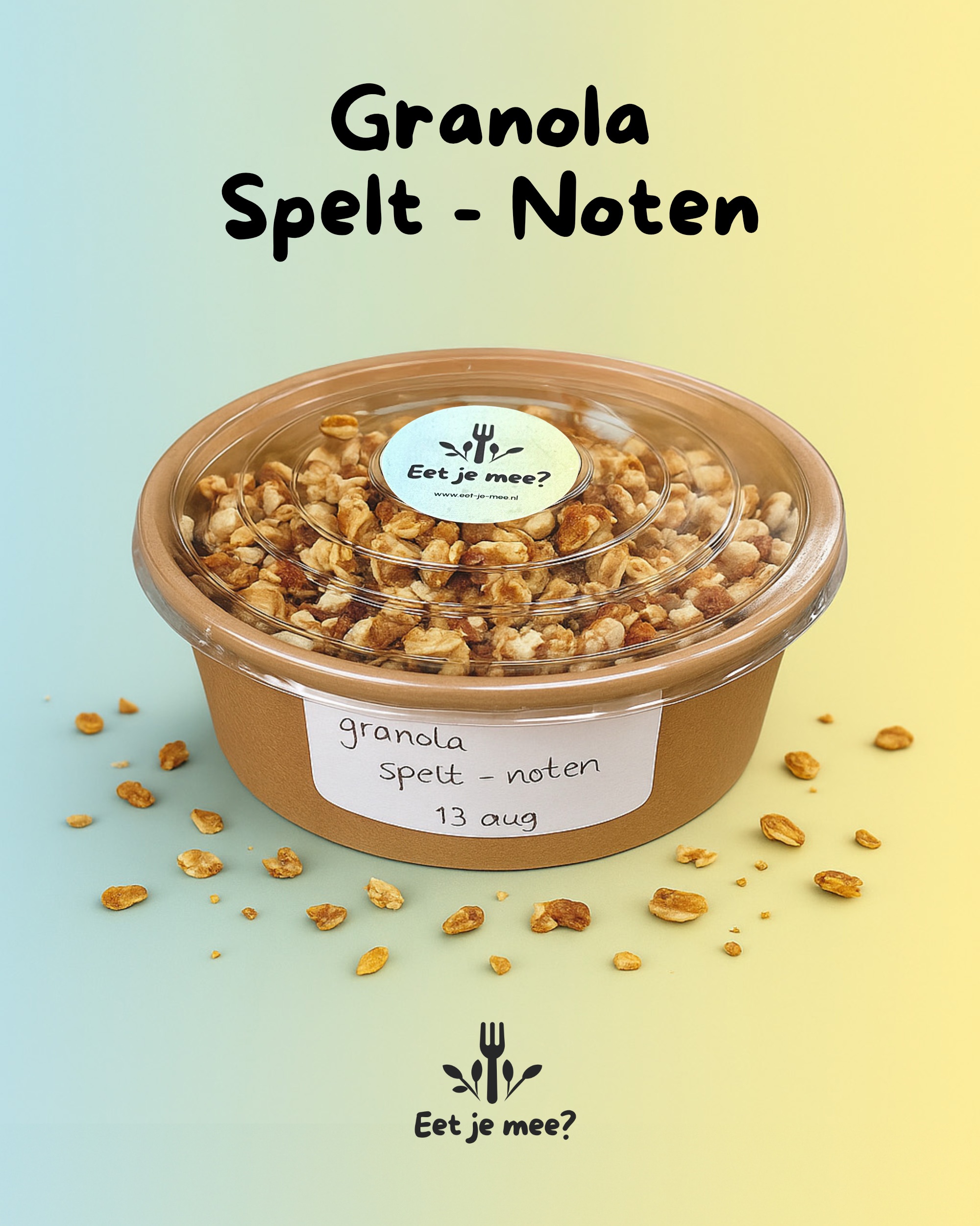 Deze granola met spelt zorgt voor de luchtige, crunchy topping over jouw kwark/yoghurt.