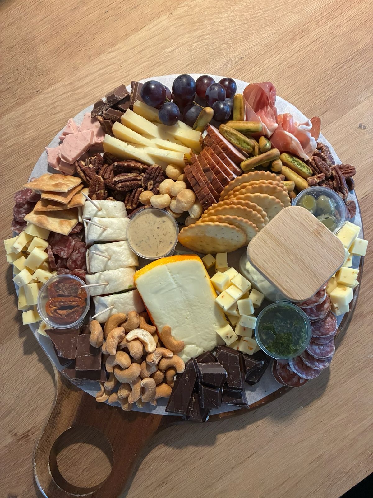 Heb jij wat te vieren? Met deze borrelplank heb je een stuk minder zorgen en krijgen je gasten een goedgevulde plank met veel variatie en keuzes.