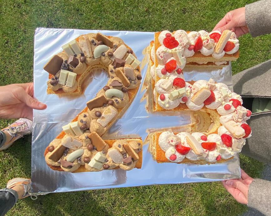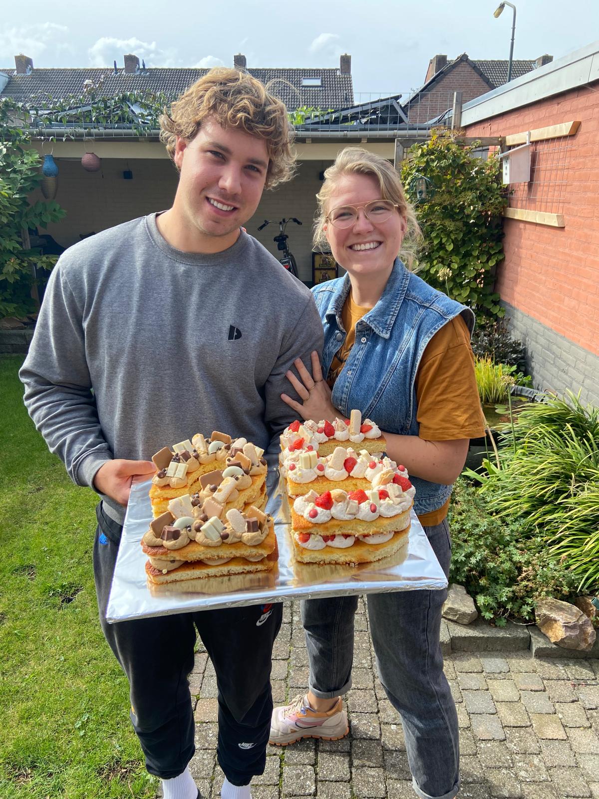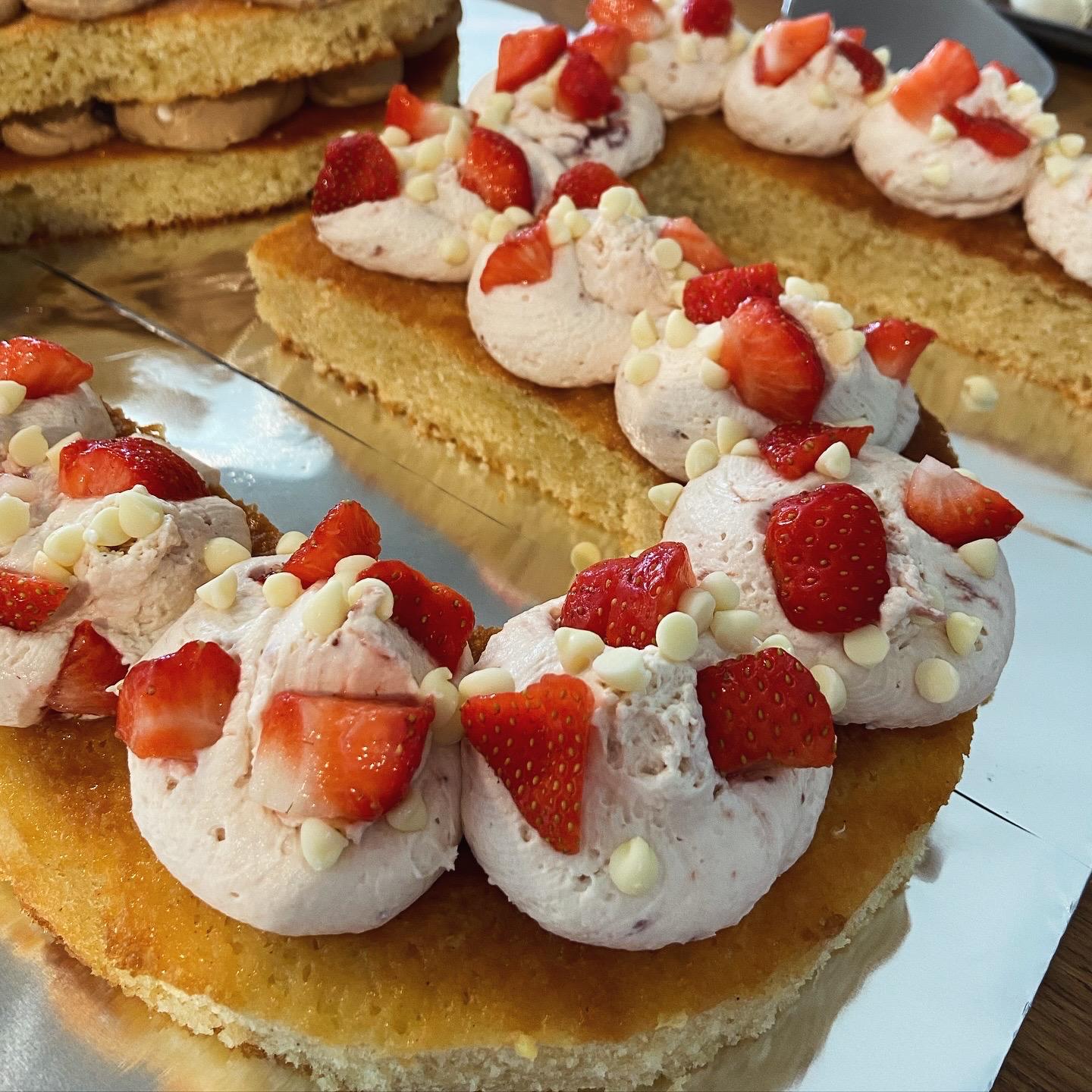 Onze letter- en cijfertaarten worden opgebouwd uit een basis van cake en gevuld met jouw keuze aan smaken. Denk aan aardbei, koffie, speculoos, limoncello of chocolade. Een taart bestaat uit twee lagen cake en vulling.